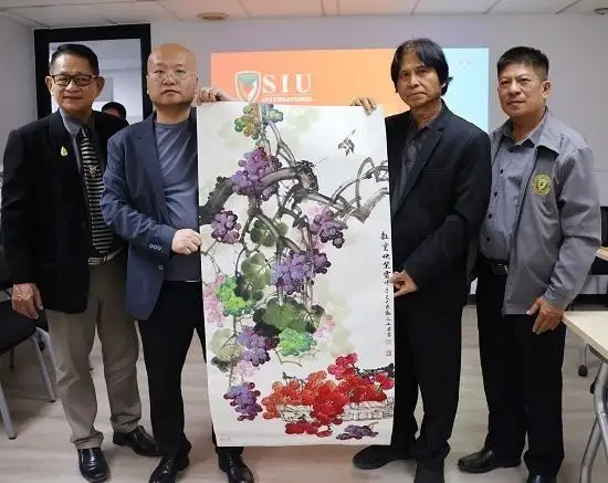 中国代表团艺术家和企业家走访泰国西那瓦国际大学。