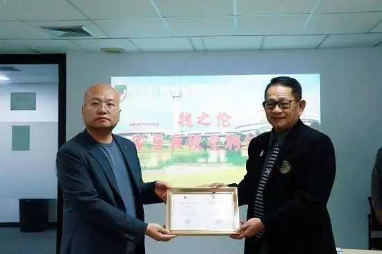 Dr.Sobsun Mahaniyom教育学院主任为魏之伦艺术家颁发客座教授聘书,由团领队张义主任代为领取,并致辞合影留念。